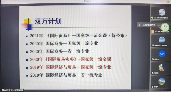 3月5日,应36365官网邀请,新疆财经大学国际经贸学院原院长段秀芳教授莅临指导,为36365官网教师开展“如何申报和建设国家级一流本科专业”的线上主题讲座,讲座由学院党委书记王维然教授主持。