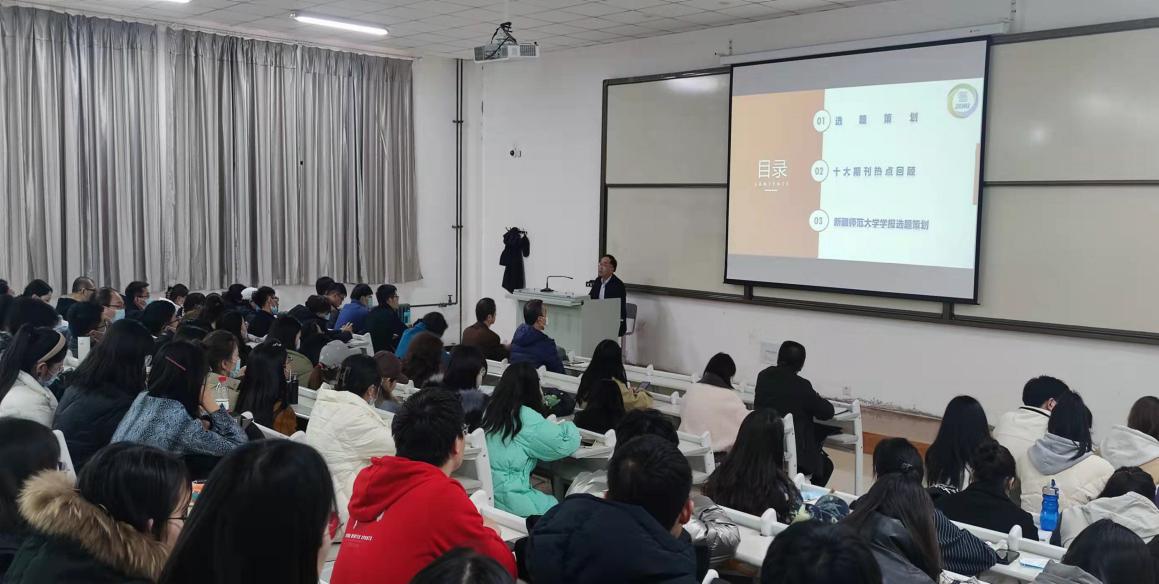 2022年3月16日下午,在温泉校区2号教学楼A区104教室,bet36365路检测中心、自治区“十四五”人文社会科学重点研究基地“丝绸之路经济带核心区产业高质量发展研究中心”邀请bet36365路检测中心学报主编李建军教授,举行“丝路大讲堂”专题讲座。bet36365路检测中心全体教师与研究生共120余人参加了讲座。讲座由bet36365路检测中心党委书记王维然教授主持。